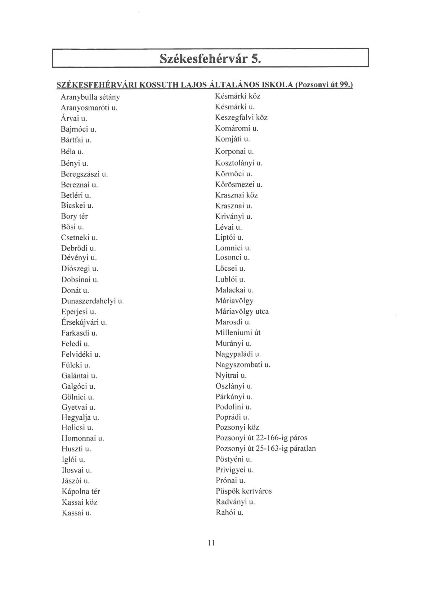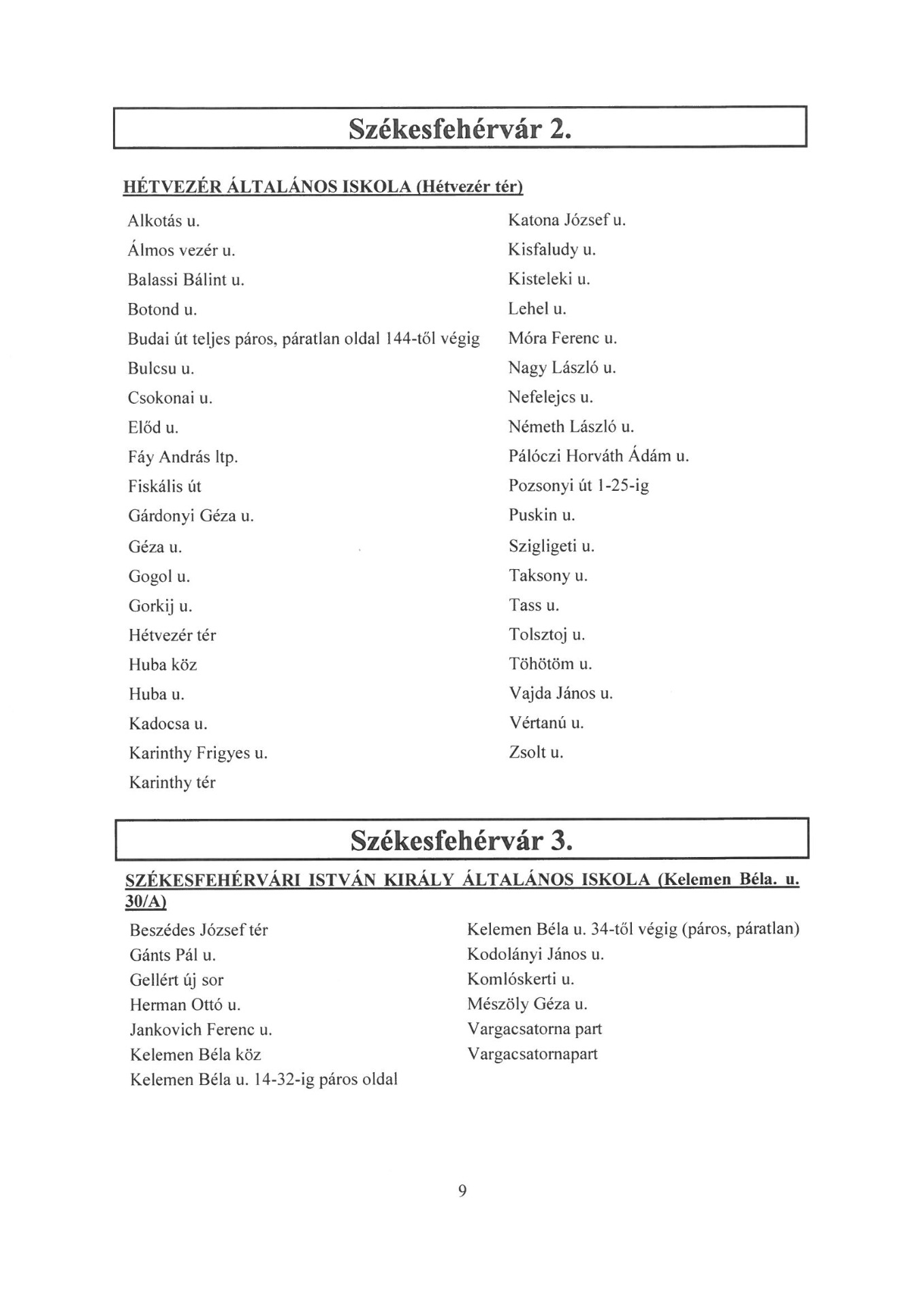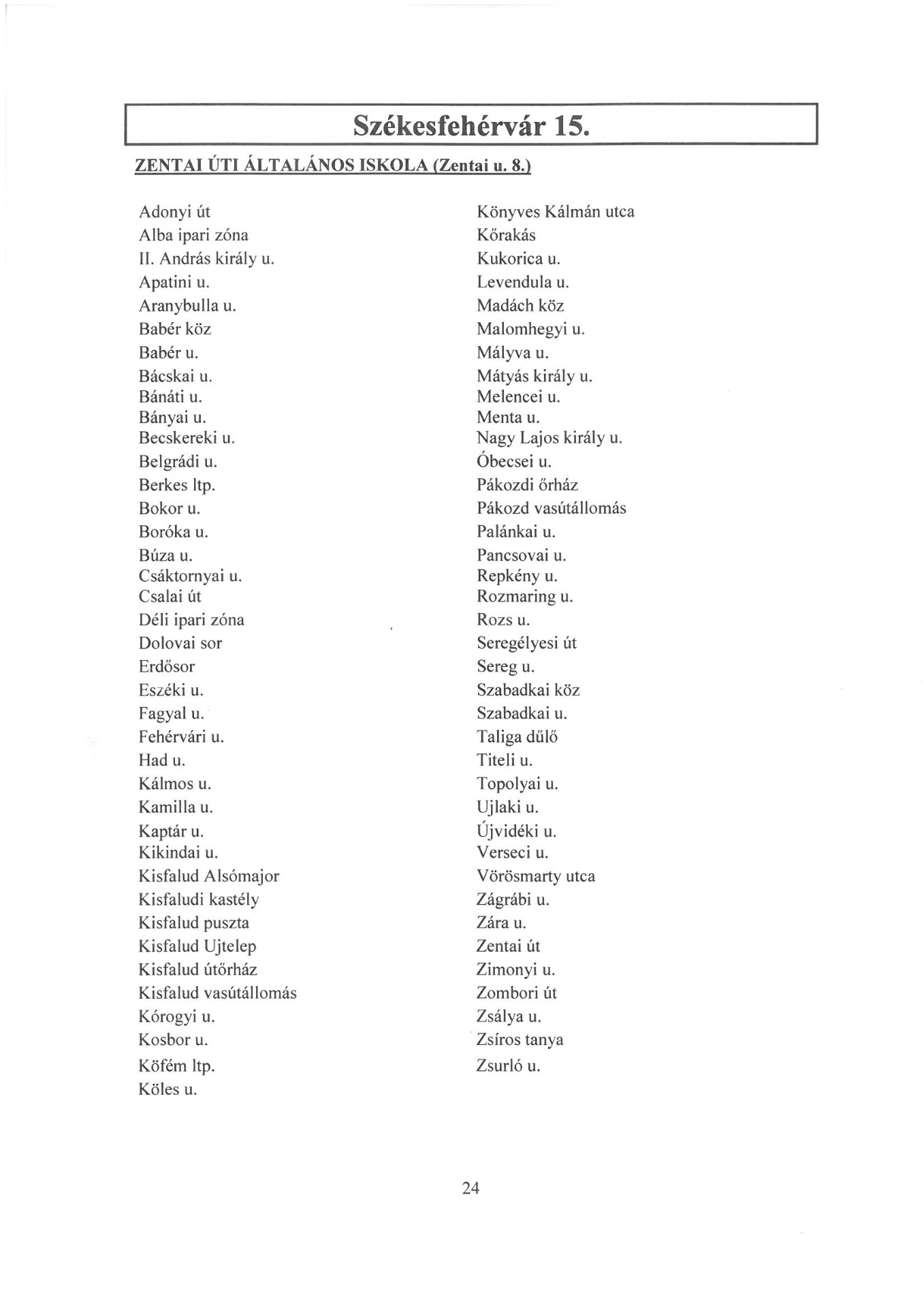 A Székesfehérvári Tankerületi Központ által megküldött, megváltozott beiskolázási körzetek iskolánkra nézve: